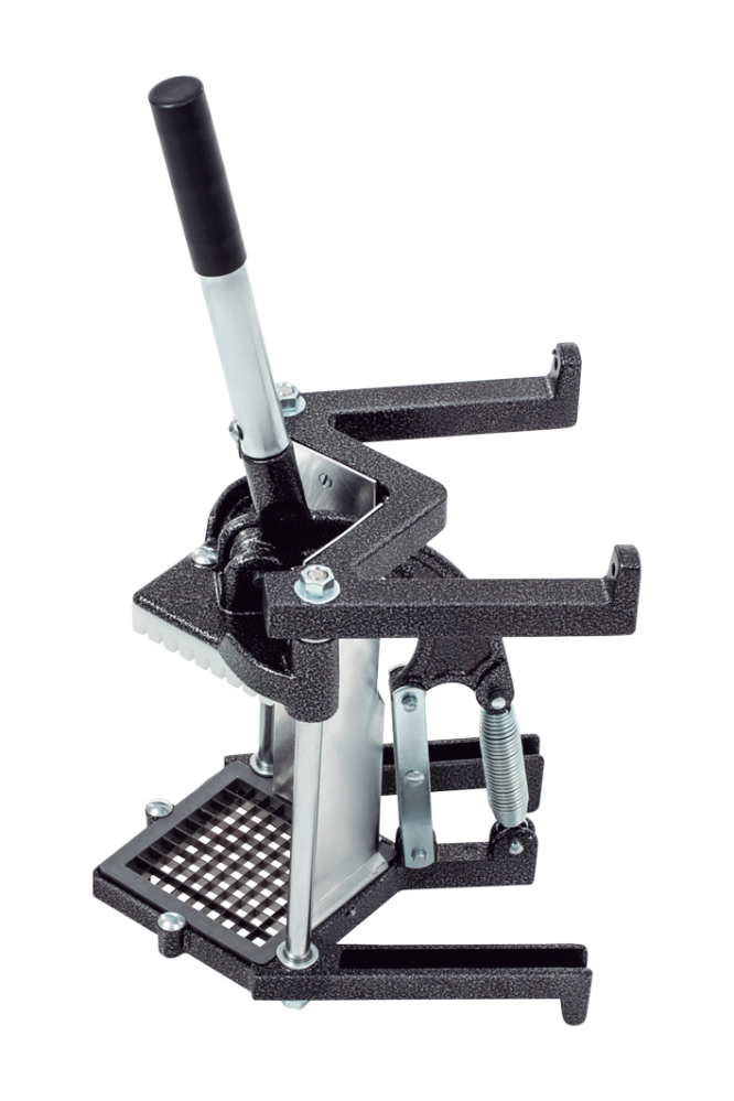 Possui sistema de fixação na parede e é ideal para cozinhas industriais. Utiliza navalhas cambiáveis nos cortes de 6, 8, 10 e 12mm.