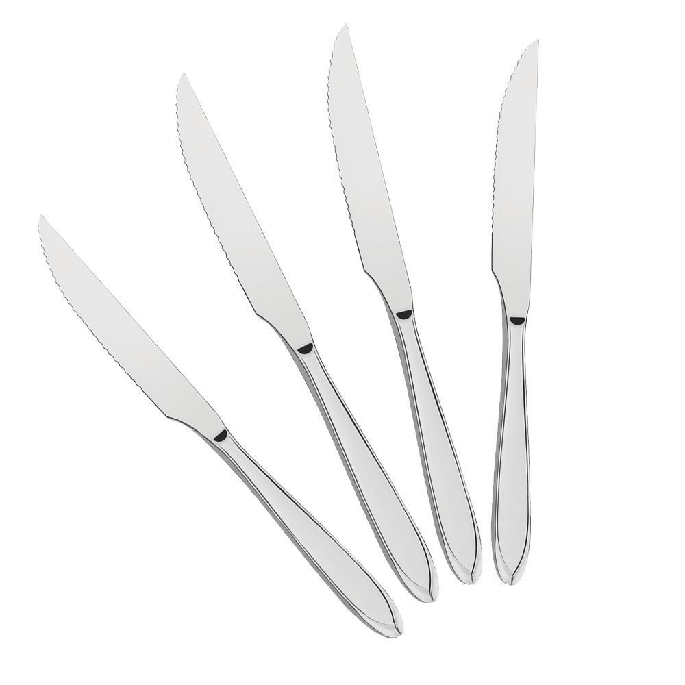 Faca totalmente temperada, que garante maior durabilidade no fio de corte e maior resistência à corrosão, e por sua característica de temperabilidade, não risca as porcelanas.